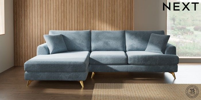 7.2.10 Buy Parker Large Sofa Chaise - Left Hand Plush Chenille Light Blue High Metal - Brass from the Seasons online shop Click here to use our website with more accessibility support, for example screen readers