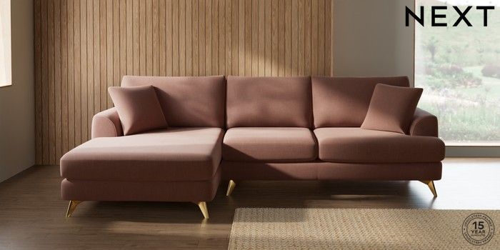 7.3.1 Buy Parker Large Sofa Chaise - Left Hand Relaxed Linen Look Light Rust Brown High Metal - Brass from the Seasons online shop Click here to use our website with more accessibility support, for example screen readers