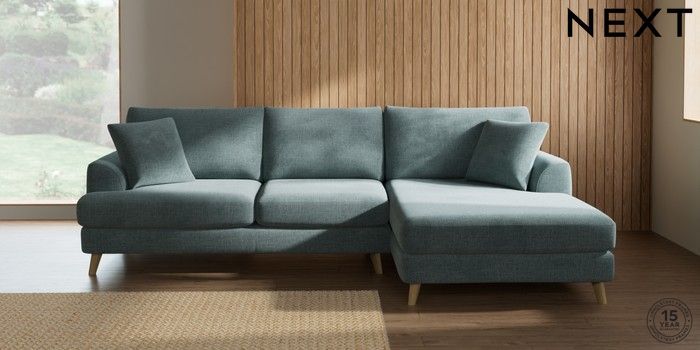 7.3.1 Buy Parker Large Sofa Chaise - Right Hand Chunky Chenille Light Teal Green Low Retro Tapered - Light from the Seasons online shop Click here to use our website with more accessibility support, for example screen readers