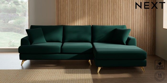 7.3.1 Buy Parker Large Sofa Chaise - Right Hand Plush Velvet Easy Clean Bottle Green High Metal - Brass from the Seasons online shop