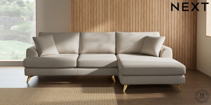 7.3.1 Buy Parker Large Sofa Chaise - Right Hand Tweedy Chenille Oyster High Metal - Brass from the Seasons online shop Click here to use our website with more accessibility support, for example screen readers