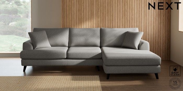 7.3.1 Buy Parker Large Sofa Chaise - Right Hand Woven Chenille Easy Clean Light Grey Low Retro Tapered - Dark from the Seasons online shop Click here to use our website with more accessibility support, for example screen readers