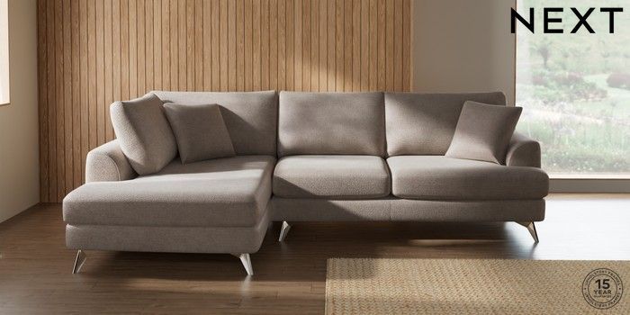 7.2.10 Buy Parker Medium Corner Chaise - Left Hand Boucle Chenille Light Natural High Metal - Chrome from the Seasons online shop Click here to use our website with more accessibility support, for example screen readers