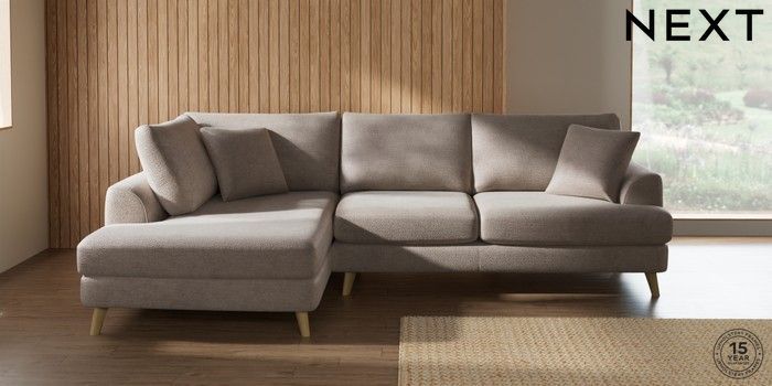 7.2.10 Buy Parker Medium Corner Chaise - Left Hand Boucle Chenille Light Natural Low Retro Tapered - Light from the Seasons online shop Click here to use our website with more accessibility support, for example screen readers