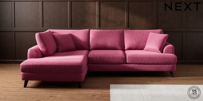7.2.10 Buy Parker Medium Corner Chaise - Left Hand Cotswold Chenille Dark Raspberry Pink Low Retro Tapered - Dark from the Seasons online shop Click here to use our website with more accessibility support, for example screen readers