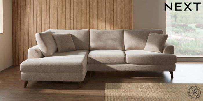 7.3.1 Buy Parker Medium Corner Chaise - Left Hand Cotswold Chenille Light Natural Low Retro Tapered - Mid from the Seasons online shop Click here to use our website with more accessibility support, for example screen readers