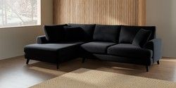 7.3.1 Buy Parker Medium Corner Chaise - Left Hand Fine Chenille Easy Clean Black Low Retro Tapered - Dark from the Seasons online shop Click here to use our website with more accessibility support, for example screen readers