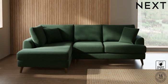 7.3.1 Buy Parker Medium Corner Chaise - Left Hand Fine Chenille Easy Clean Mid Khaki Green Low Retro Tapered - Mid from the Seasons online shop Click here to use our website with more accessibility support, for example screen readers