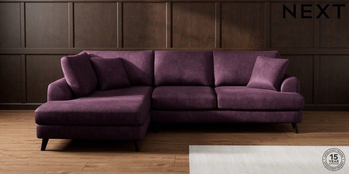 7.3.1 Buy Parker Medium Corner Chaise - Left Hand Plush Chenille Dark Plum Purple Low Retro Tapered - Dark from the Seasons online shop Click here to use our website with more accessibility support, for example screen readers