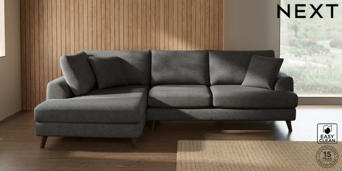 7.3.1 Buy Parker Medium Corner Chaise - Left Hand Tweedy Blend Easy Clean Dark Grey Low Retro Tapered - Mid from the Seasons online shop Click here to use our website with more accessibility support, for example screen readers