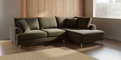 7.3.1 Buy Parker Medium Corner Chaise - Right Hand Fine Chenille Easy Clean Dark Moss Green Low Retro Tapered - Light from the Seasons online shop Click here to use our website with more accessibility support, for example screen readers