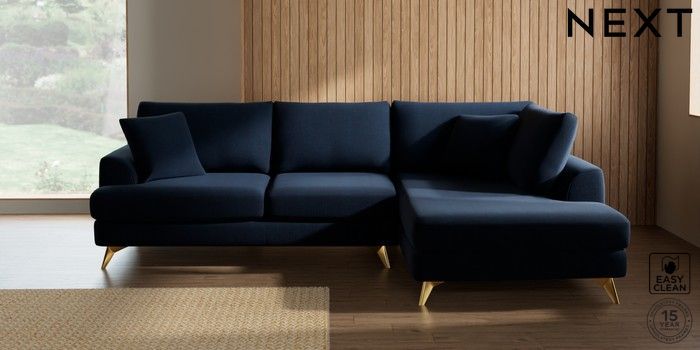 7.3.1 Buy Parker Medium Corner Chaise - Right Hand Fine Chenille Easy Clean Dark Navy Blue High Metal - Brass from the Seasons online shop Click here to use our website with more accessibility support, for example screen readers