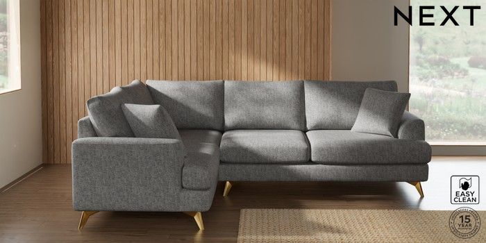 7.2.10 Buy Parker Medium Corner Sofa - Left Hand Chunky Boucle Easy Clean Light Grey High Metal - Brass from the Seasons online shop Click here to use our website with more accessibility support, for example screen readers
