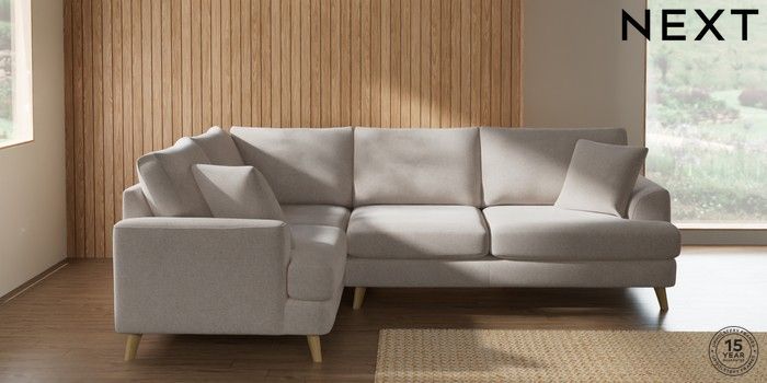 7.2.10 Buy Parker Medium Corner Sofa - Left Hand Chunky Chenille Oyster Low Retro Tapered - Light from the Seasons online shop Click here to use our website with more accessibility support, for example screen readers