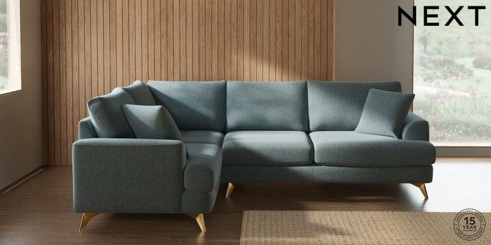 7.2.10 Buy Parker Medium Corner Sofa - Left Hand Chunky Marl Mid Blue High Metal - Brass from the Seasons online shop Click here to use our website with more accessibility support, for example screen readers