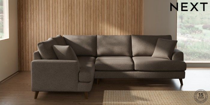 7.2.10 Buy Parker Medium Corner Sofa - Left Hand Chunky Weave Dark Natural Low Retro Tapered - Mid from the Seasons online shop Click here to use our website with more accessibility support, for example screen readers