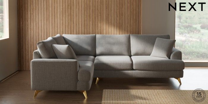 7.2.10 Buy Parker Medium Corner Sofa - Left Hand Chunky Weave Dove Grey High Metal - Brass from the Seasons online shop Click here to use our website with more accessibility support, for example screen readers