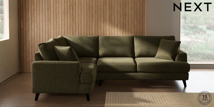 7.3.1 Buy Parker Medium Corner Sofa - Left Hand Cotswold Chenille Dark Green Low Retro Tapered - Dark from the Seasons online shop Click here to use our website with more accessibility support, for example screen readers