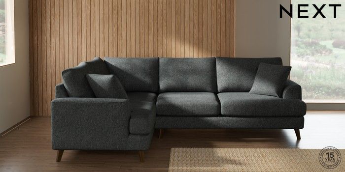 7.2.10 Buy Parker Medium Corner Sofa - Left Hand Cotswold Chenille Dark Grey Low Retro Tapered - Mid from the Seasons online shop Click here to use our website with more accessibility support, for example screen readers