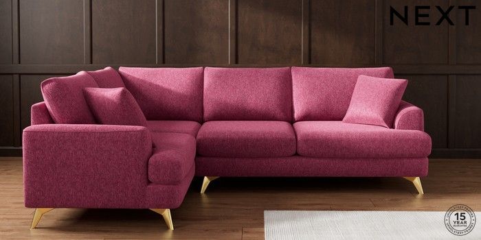 7.2.10 Buy Parker Medium Corner Sofa - Left Hand Cotswold Chenille Dark Raspberry Pink High Metal - Brass from the Seasons online shop Click here to use our website with more accessibility support, for example screen readers