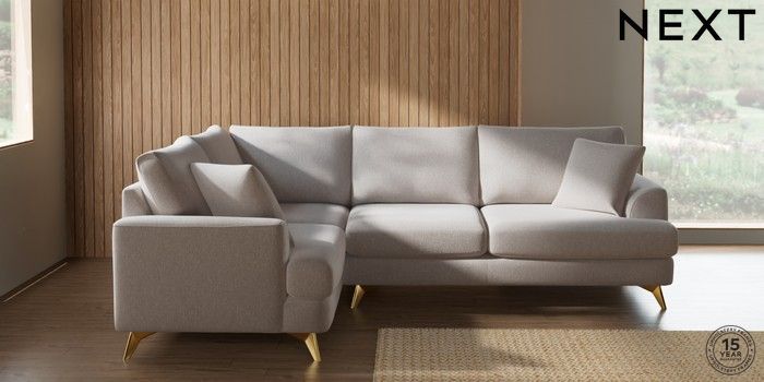 7.2.10 Buy Parker Medium Corner Sofa - Left Hand Cotswold Chenille Oyster High Metal - Brass from the Seasons online shop Click here to use our website with more accessibility support, for example screen readers