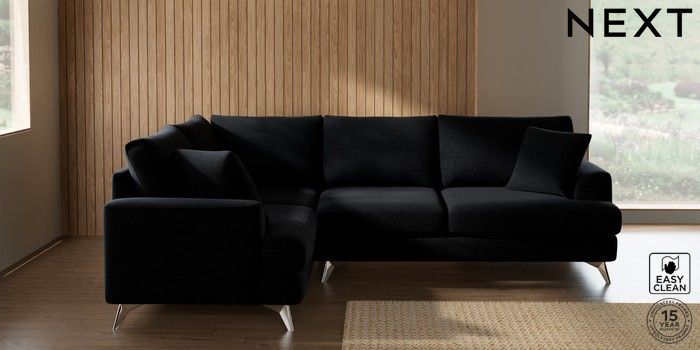 7.2.10 Buy Parker Medium Corner Sofa - Left Hand Fine Chenille Easy Clean Black High Metal - Chrome from the Seasons online shop Click here to use our website with more accessibility support, for example screen readers