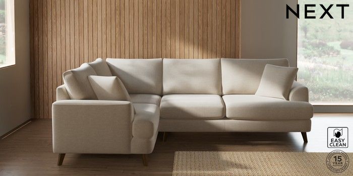 7.2.10 Buy Parker Medium Corner Sofa - Left Hand Fine Chenille Easy Clean Oyster Low Retro Tapered - Mid from the Seasons online shop Click here to use our website with more accessibility support, for example screen readers