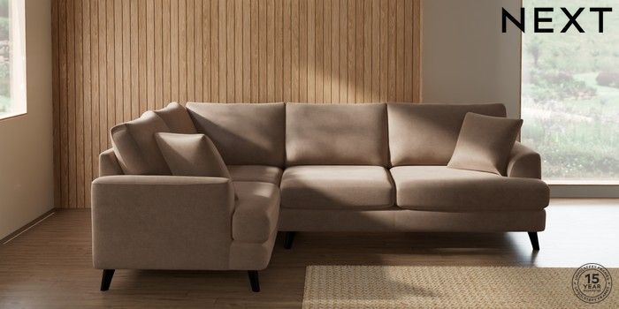 7.2.10 Buy Parker Medium Corner Sofa - Left Hand Luxe Chenille Mid Natural Low Retro Tapered - Dark from the Seasons online shop Click here to use our website with more accessibility support, for example screen readers
