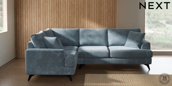 7.2.10 Buy Parker Medium Corner Sofa - Left Hand Plush Chenille Light Blue High Metal - Black from the Seasons online shop Click here to use our website with more accessibility support, for example screen readers