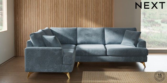 7.2.10 Buy Parker Medium Corner Sofa - Left Hand Plush Chenille Light Blue High Metal - Brass from the Seasons online shop Click here to use our website with more accessibility support, for example screen readers