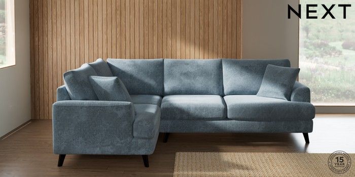 7.2.10 Buy Parker Medium Corner Sofa - Left Hand Plush Chenille Light Blue Low Retro Tapered - Dark from the Seasons online shop Click here to use our website with more accessibility support, for example screen readers