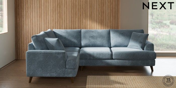 7.2.10 Buy Parker Medium Corner Sofa - Left Hand Plush Chenille Light Blue Low Retro Tapered - Mid from the Seasons online shop Click here to use our website with more accessibility support, for example screen readers