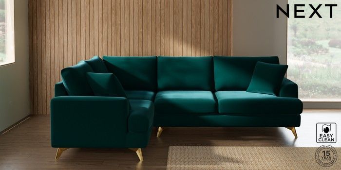 7.3.1 Buy Parker Medium Corner Sofa - Left Hand Plush Velvet Easy Clean Juniper Green High Metal - Brass from the Seasons online shop Click here to use our website with more accessibility support, for example screen readers