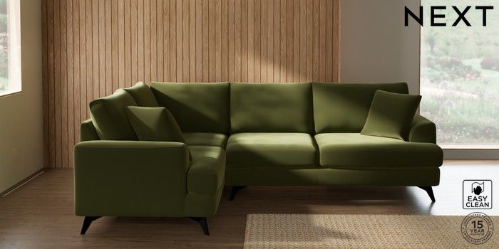 7.3.1 Buy Parker Medium Corner Sofa - Left Hand Plush Velvet Easy Clean Mid Olive Green High Metal - Black from the Seasons online shop Click here to use our website with more accessibility support, for example screen readers