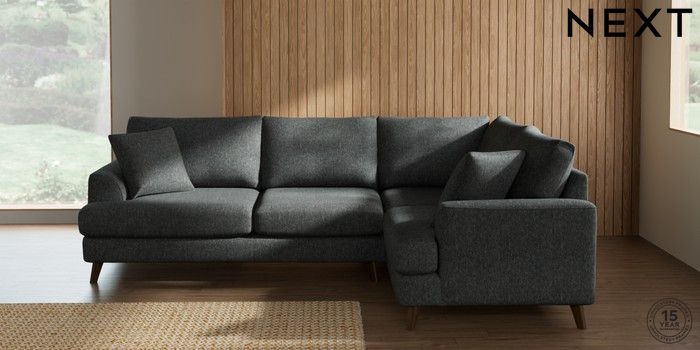 7.2.10 Buy Parker Medium Corner Sofa - Right Hand Cotswold Chenille Dark Grey Low Retro Tapered - Mid from the Seasons online shop Click here to use our website with more accessibility support, for example screen readers