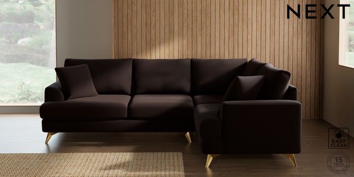 7.3.1 Buy Parker Medium Corner Sofa - Right Hand Fine Chenille Easy Clean Chocolate Brown High Metal - Brass from the Seasons online shop Click here to use our website with more accessibility support, for example screen readers
