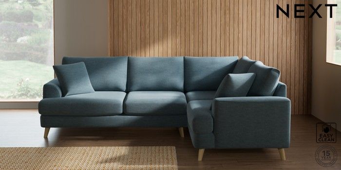 7.2.10 Buy Parker Medium Corner Sofa - Right Hand Fine Chenille Easy Clean Mid Blue Low Retro Tapered - Light from the Seasons online shop Click here to use our website with more accessibility support, for example screen readers