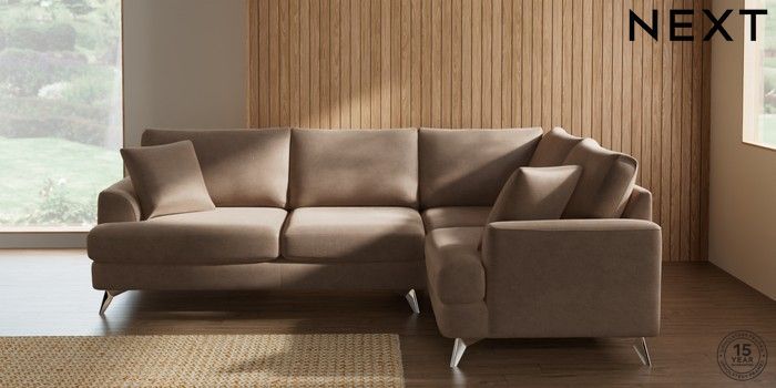 7.2.10 Buy Parker Medium Corner Sofa - Right Hand Luxe Chenille Mid Natural High Metal - Chrome from the Seasons online shop Click here to use our website with more accessibility support, for example screen readers