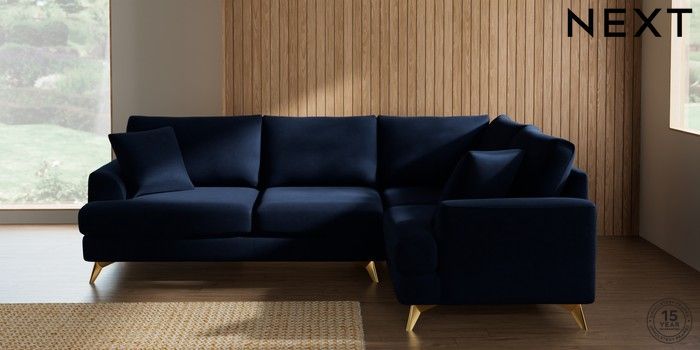 7.2.10 Buy Parker Medium Corner Sofa - Right Hand Luxe Chenille Navy Blue High Metal - Brass from the Seasons online shop Click here to use our website with more accessibility support, for example screen readers
