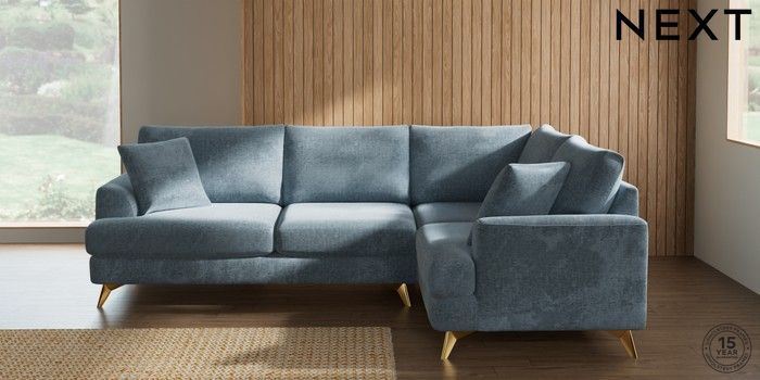 7.2.10 Buy Parker Medium Corner Sofa - Right Hand Plush Chenille Light Blue High Metal - Brass from the Seasons online shop Click here to use our website with more accessibility support, for example screen readers