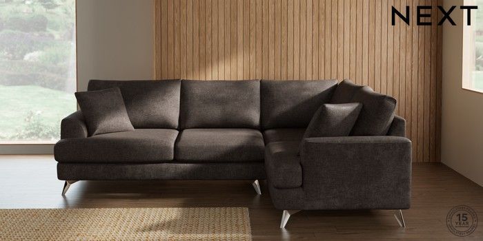 7.2.10 Buy Parker Medium Corner Sofa - Right Hand Plush Chenille Mink Brown High Metal - Chrome from the Seasons online shop Click here to use our website with more accessibility support, for example screen readers