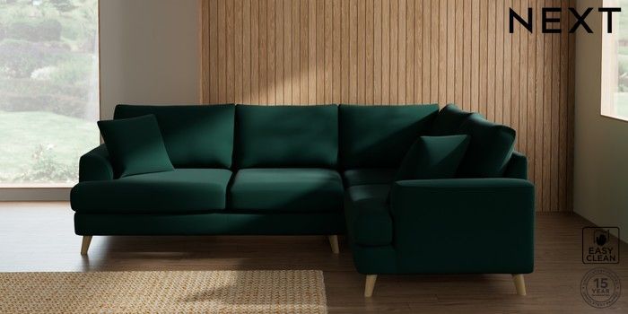 7.3.1 Buy Parker Medium Corner Sofa - Right Hand Plush Velvet Easy Clean Bottle Green Low Retro Tapered - Light from the Seasons online shop Click here to use our website with more accessibility support, for example screen readers