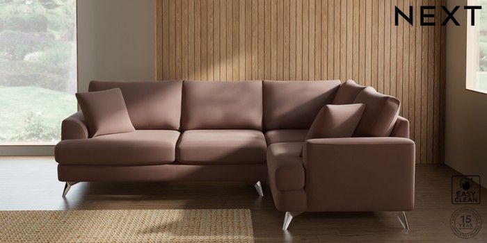 7.3.1 Buy Parker Medium Corner Sofa - Right Hand Plush Velvet Easy Clean Mid Natural High Metal - Chrome from the Seasons online shop Click here to use our website with more accessibility support, for example screen readers