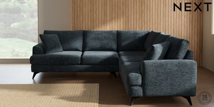 7.2.10 Buy Parker Medium Corner Sofa - Universal Chunky Chenille Dark Navy Blue High Metal - Black from the Seasons online shop Click here to use our website with more accessibility support, for example screen readers