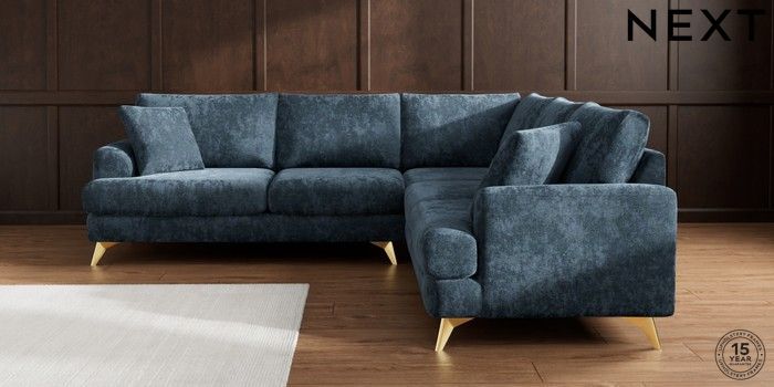 7.2.10 Buy Parker Medium Corner Sofa - Universal Distressed Velour Midnight Blue High Metal - Brass from the Seasons online shop Click here to use our website with more accessibility support, for example screen readers