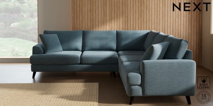 7.2.10 Buy Parker Medium Corner Sofa - Universal Fine Chenille Easy Clean Mid Blue Low Retro Tapered - Dark from the Seasons online shop Click here to use our website with more accessibility support, for example screen readers