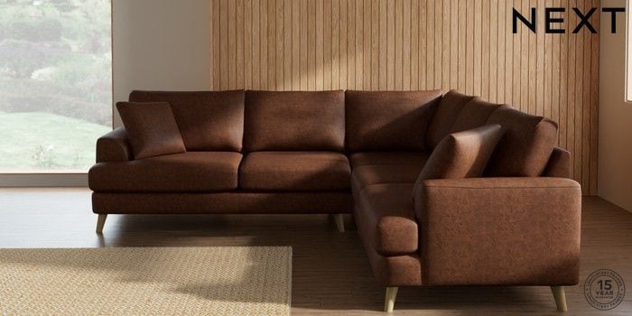 7.3.1 Buy Parker Medium Corner Sofa - Universal Monza Faux Leather Easy Clean Chestnut Brown Low Retro Tapered - Light from the Seasons online shop Click here to use our website with more accessibility support, for example screen readers