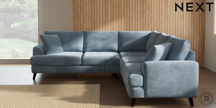 7.2.10 Buy Parker Medium Corner Sofa - Universal Plush Chenille Light Blue Low Retro Tapered - Dark from the Seasons online shop Click here to use our website with more accessibility support, for example screen readers