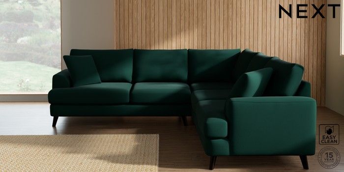 7.3.1 Buy Parker Medium Corner Sofa - Universal Plush Velvet Easy Clean Bottle Green Low Retro Tapered - Dark from the Seasons online shop Click here to use our website with more accessibility support, for example screen readers