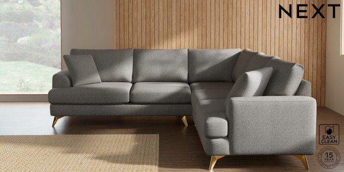 7.2.10 Buy Parker Medium Corner Sofa - Universal Woven Chenille Easy Clean Light Grey High Metal - Brass from the Seasons online shop Click here to use our website with more accessibility support, for example screen readers